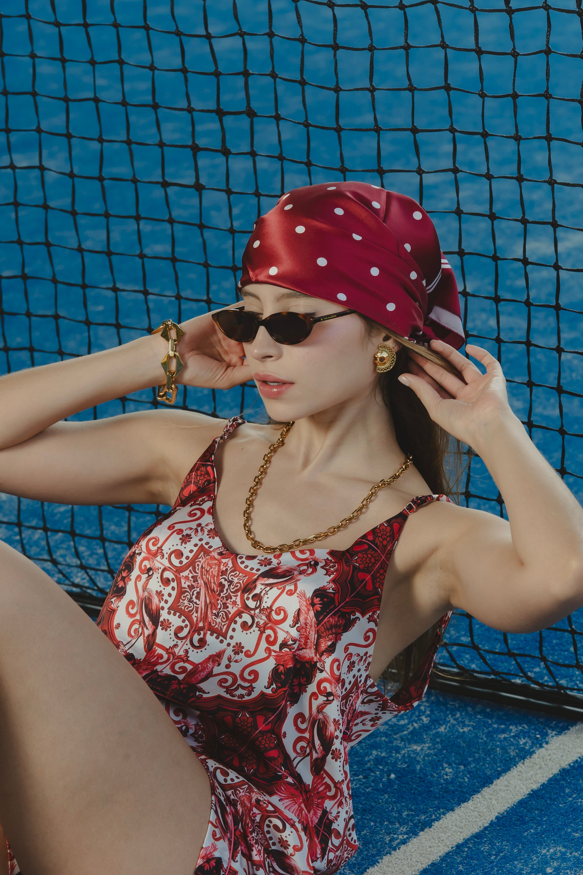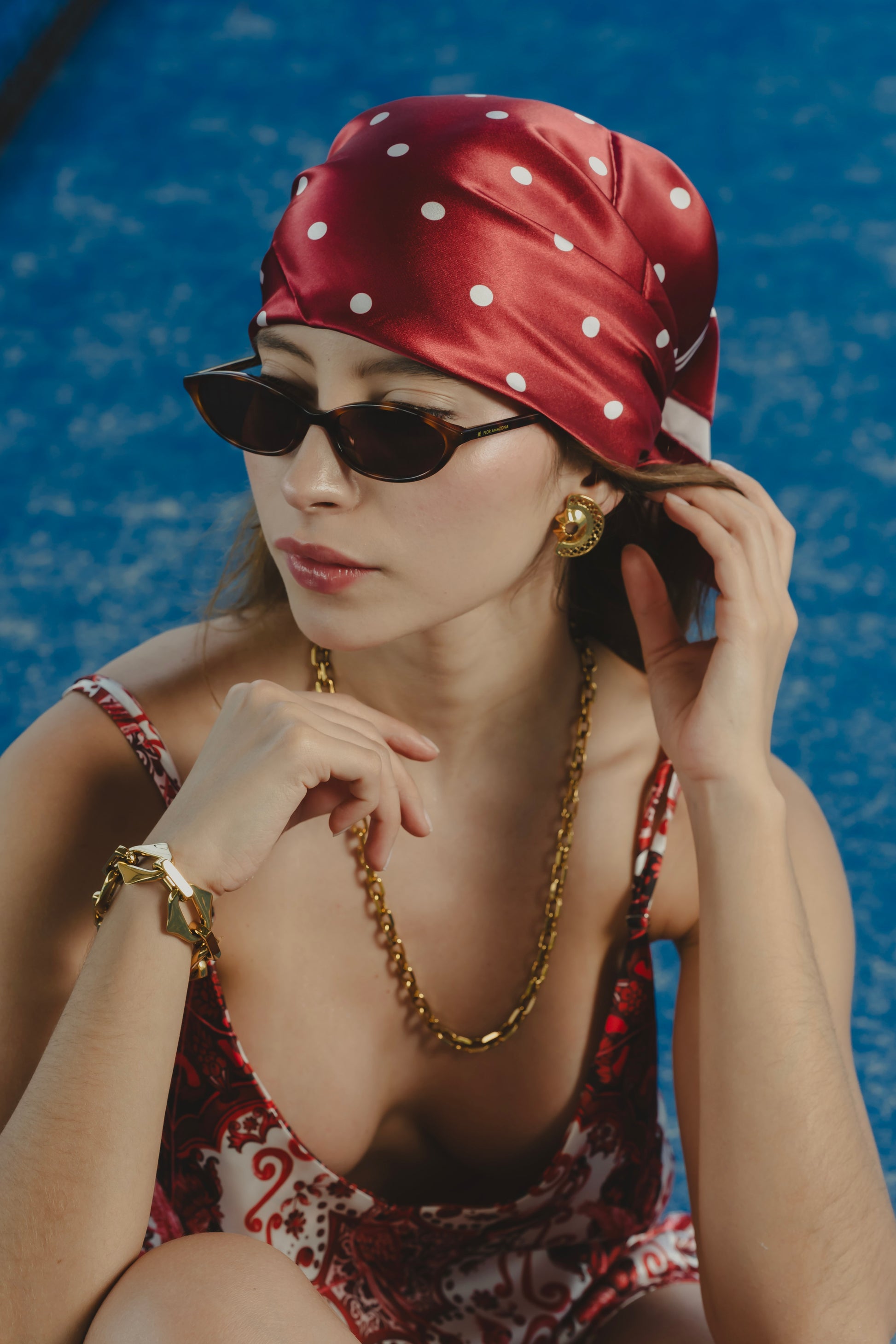 Una pañoleta audaz, bellamente inspirada en la flora y fauna de Colombia. Puede usarse como accesorio para la cabeza, cinturón, o combinarse con nuestro beachwrap como top corto para crear un look completo de verano.